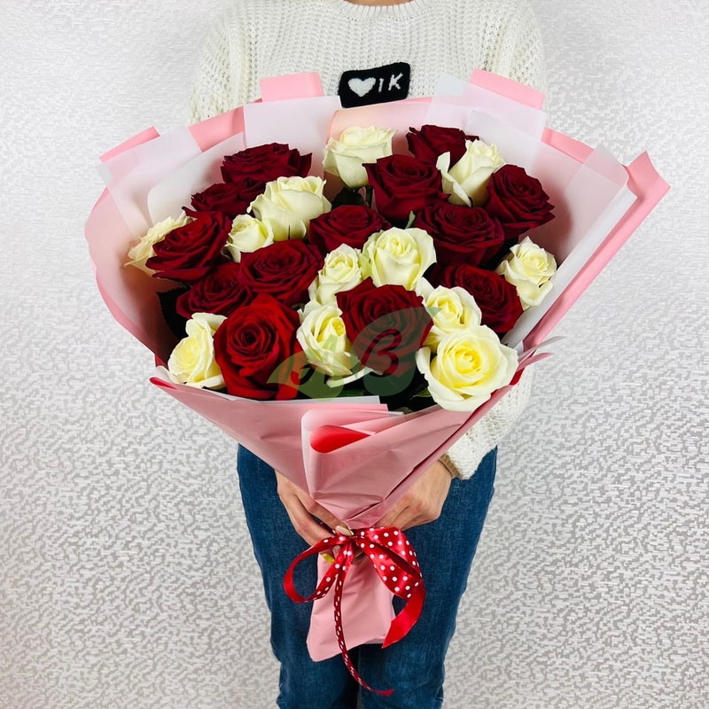Букет из белых и красных роз - 60 см